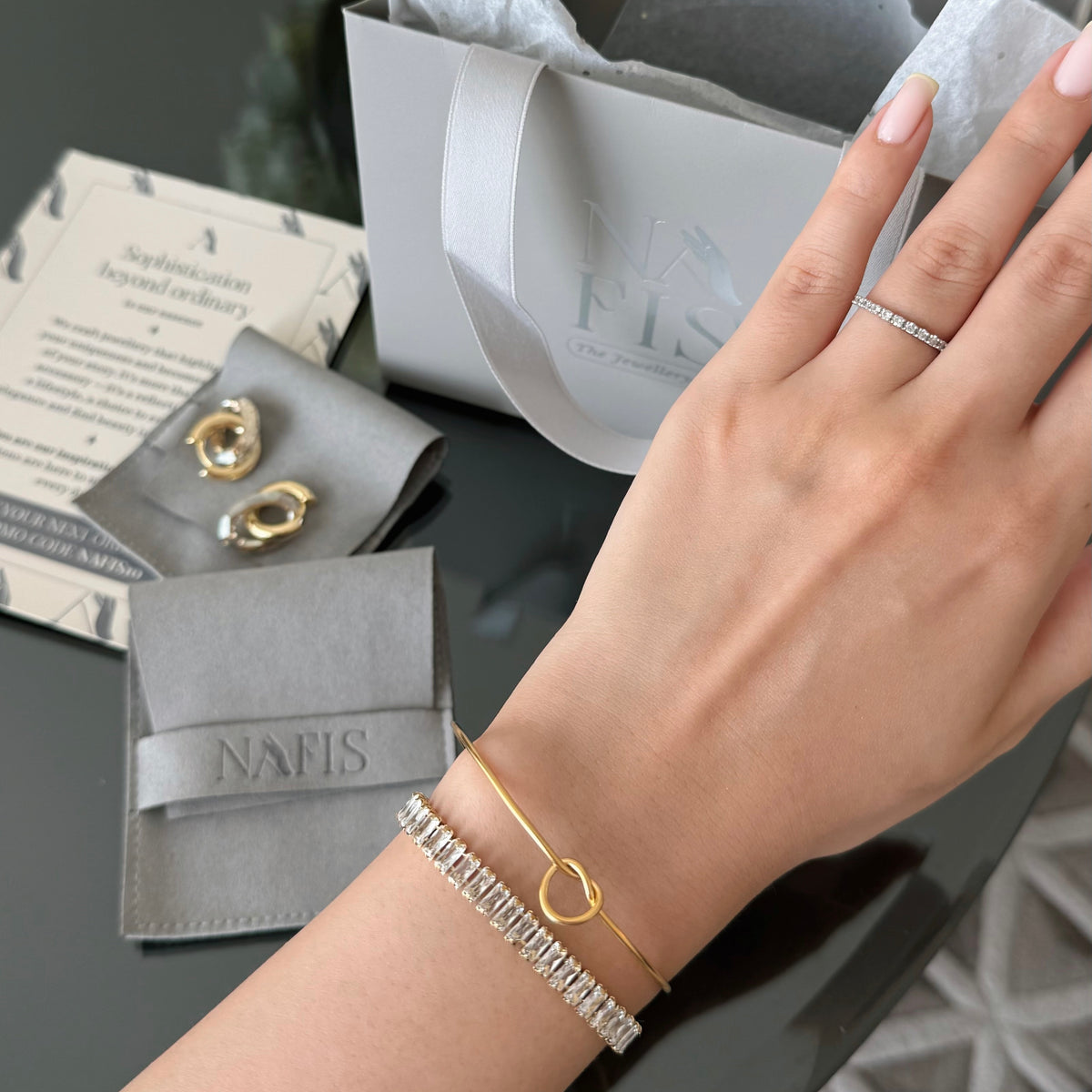 Every piece arrives in a signature NAFIS jewellery pouch — refined, protective, and perfect for gifting.