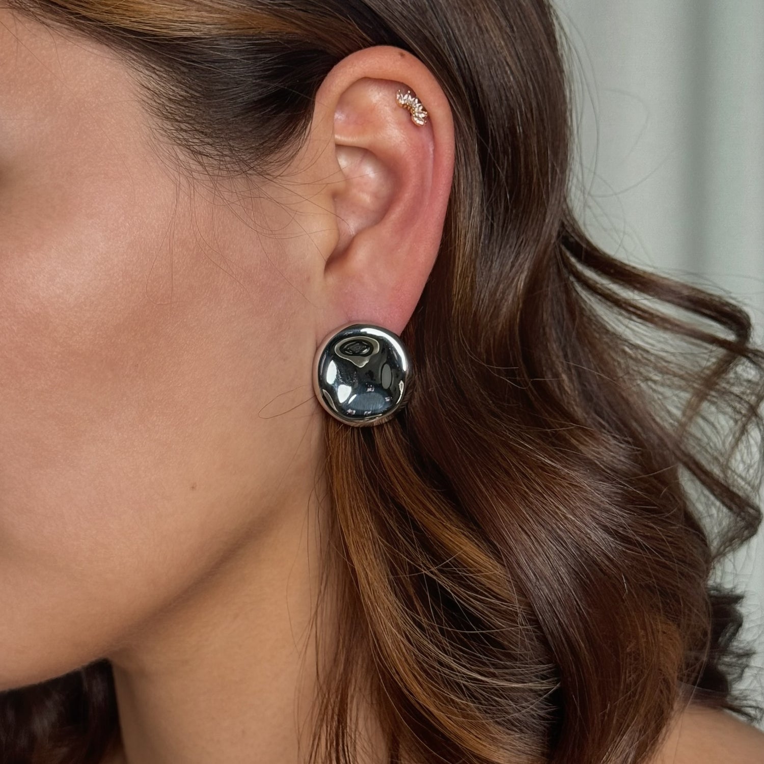 18K gold PVD plated stainless steel Chunky round stud earring designed for everyday wear.