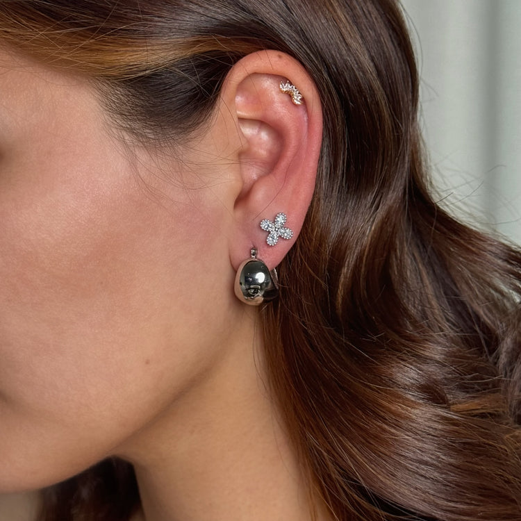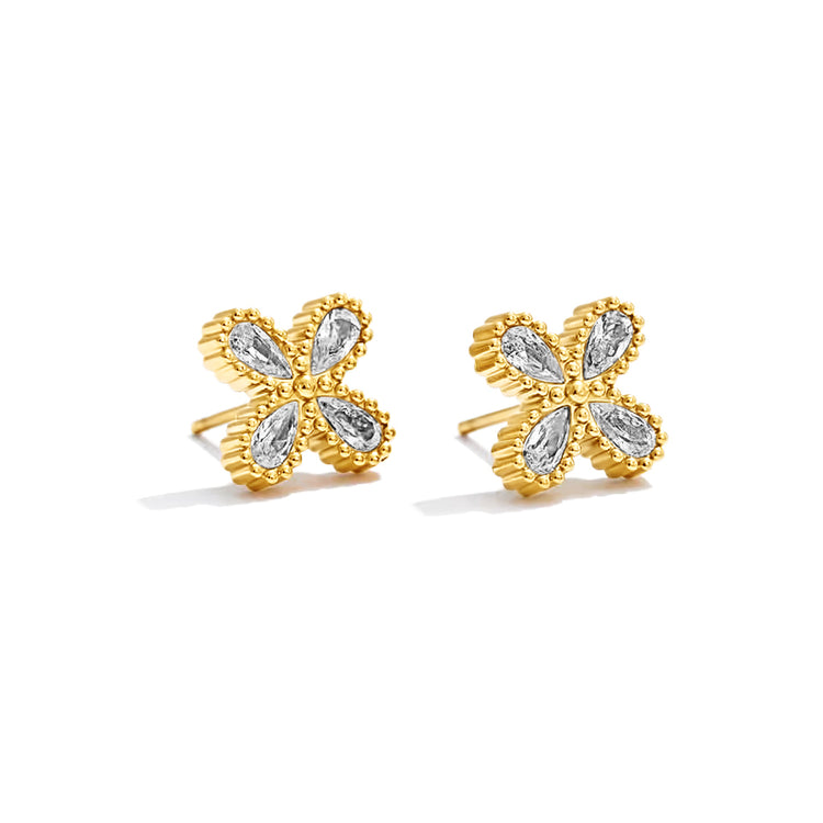 18K gold PVD plated stainless steel Cubic zirconia leaf stud earring designed for everyday wear.