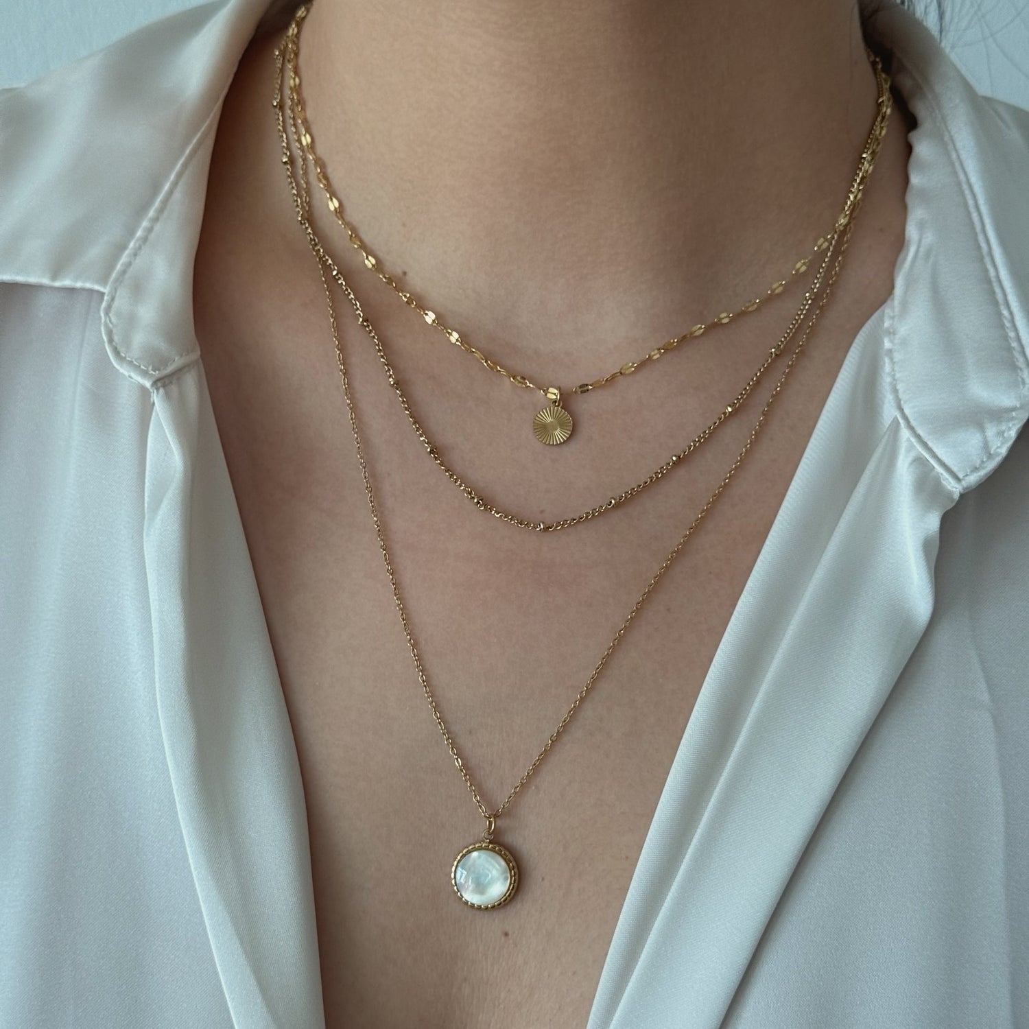 18K gold PVD plated stainless steel Multilayer bohemian necklace designed for everyday wear.
