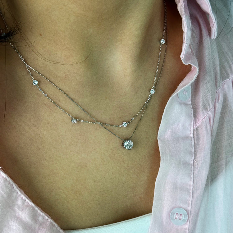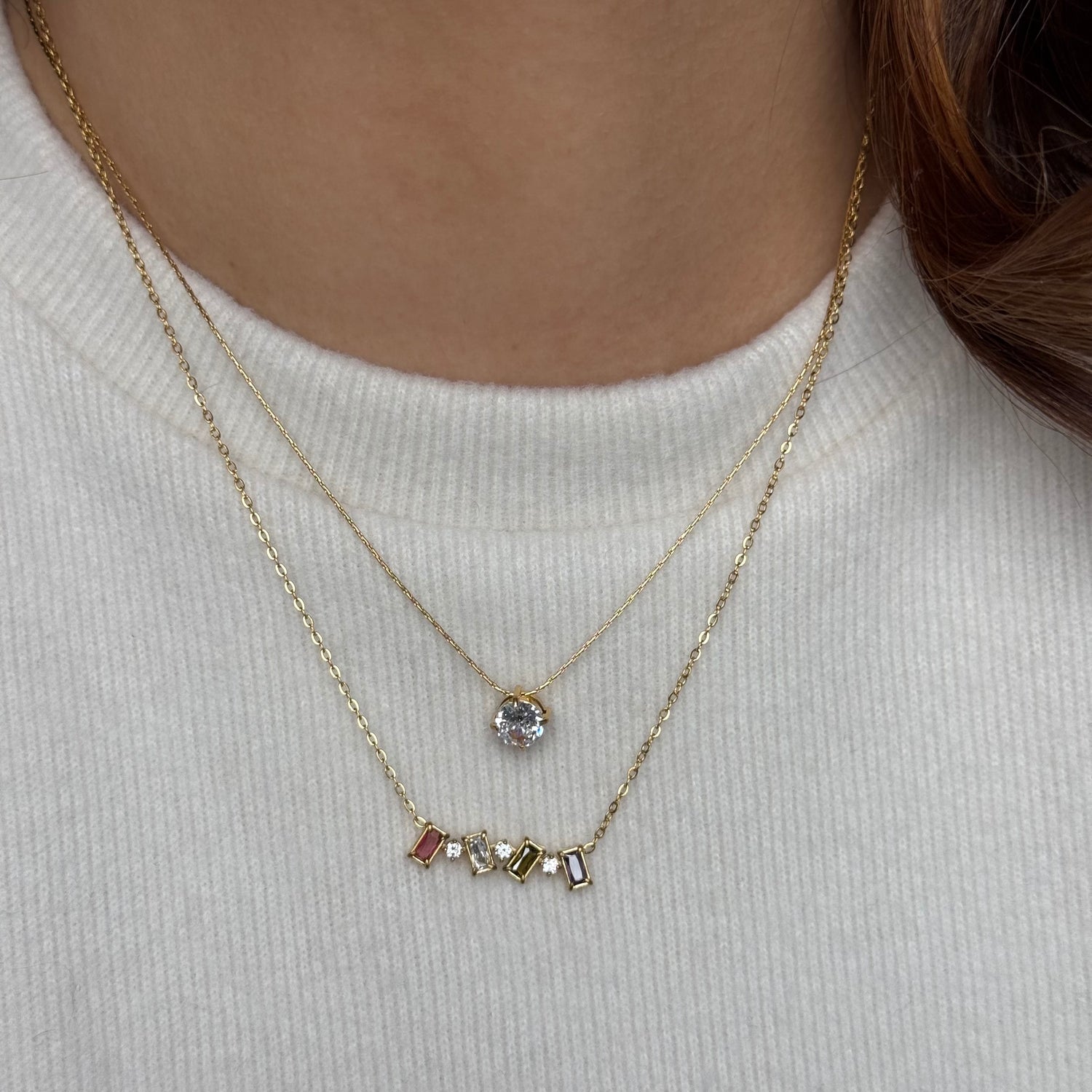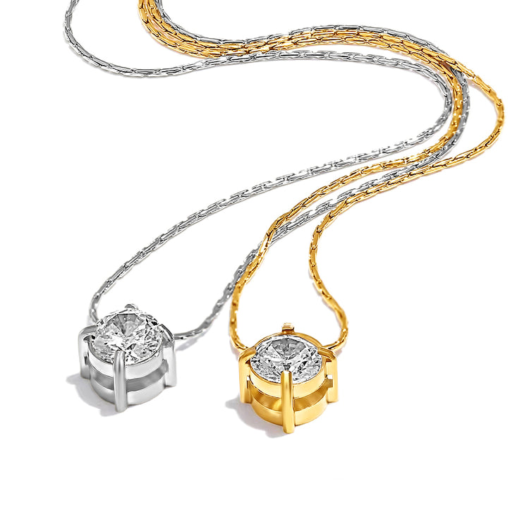 18K gold PVD plated stainless steel Cubic zirconia pendant necklace designed for everyday wear.